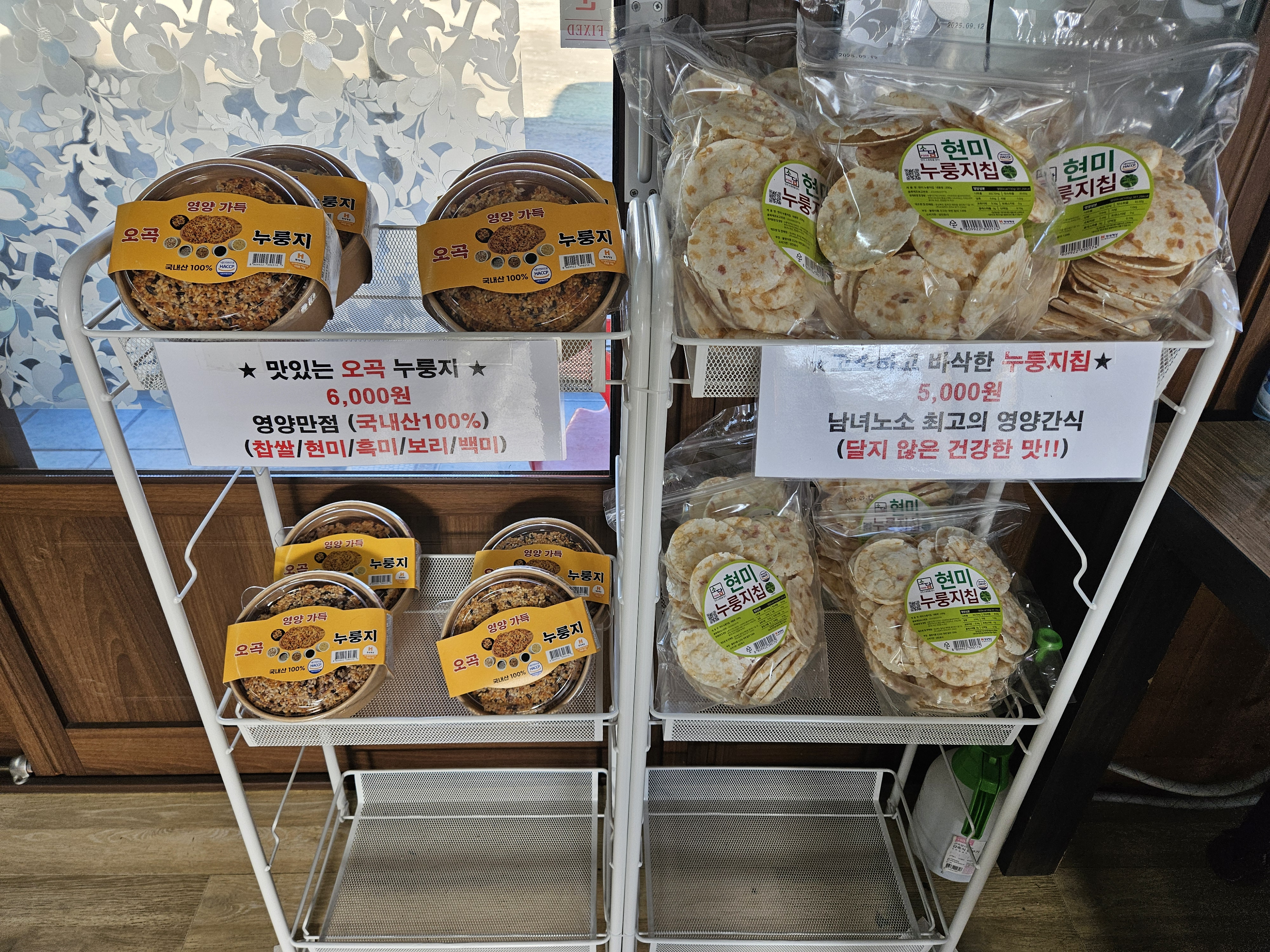 나가는 길에 맛있는 누룽지 간식들도 파는 모습.